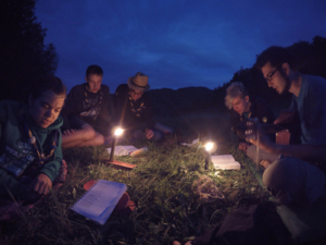 Nun konnten sich die Wachteln auf den Weg hinunter machen. Am Fuß des Berges schlug man die Kohte auf einem Acker auf. Währenddessen gab es Besuch von einem Hund, der aufgrund gewisser Eigenarten „Tripper“ genannt wurde. Nachdem der Besitzer des Hundes aufgetaucht war, wurde es auch schon dunkel und die Wachteln legten sich schlafen, wobei ich selber nachts aus der Kohte rutschte und auf dem Feld weiterschlief.