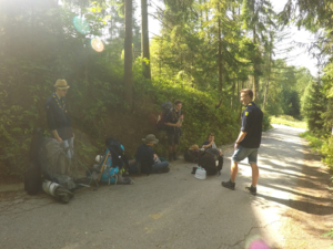 Aber der nächste Tag grüßte mit Hitze und klarem Himmel. Und so machten sich alle Wandergruppen auf den Weg. Erstes Ziel: Die Bergspitze des Turbacz! Leider der höchste Berg der Region. Die Wachteln mussten feststellen, dass Polen nicht immer gleich ist. Waren sie noch letztes Jahr in den Masuren durch Flachland gewandert, überquerten sie nun ein Gebirge. Die Stimmung schwankte bereits. Doch der Blick in die Ferne motivierte ungemein. In der Ferne konnte man nämlich die Hohe Tatra (25 Gipfel oberhalb der Baumgrenze (!)) erspähen und die Tatsache dort nicht wandern zu müssen, war eine positive Tatsache. Die Wachteln entdeckten, dass dieser Berg sogar bebaut war. Auf der Hälfte der Strecke, gab es eine Kirche mit regelmäßig stattfindenen Gottesdiensten. Da hält der Glaube einen wenigstens fit. Kurz vor dem Ziel traf man dann auf die andere Wandersippe, deren Weg wohl noch steiler gewesen war. Gemeinsam erreichte man den Gipfel. Dort wollten die Wachteln auch schnell die Kohte aufbauen, jedoch fehlte eine Kohtenbahn. Eine der Wachteln (*hust* Später *hust*) hatte seine Kohtenbahn im Tal vergessen eine weitere Nacht unter freiem Himmel folgte. Am nächsten Morgen machte sich Matschi auf dem Weg ins Tal, um die vermisste Kohtenbahn zurückzuholen.Die restlichen Wachteln schliefen aus und nach der Rückkehr unseres Stammesleiters wurde die Wanderung fortgesetzt.