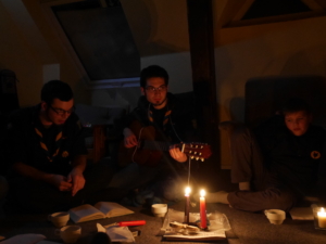 Angekommen wurden dann Türschilder für alle Zimmer gebastelt und der Abend mit einer pfadfindertypischen Singerunde beendet.