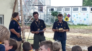 Das Stammesgrillen begann mit den Delegierten-Wahlen, denn in naher Zukunft findet die Landes Versammlung statt. Außerdem wurde Matschi und Blanco für ihre Arbeit in der Stammesführung in den letzten Jahren gedankt und die Sippen Avalon und Lancelot wurden von Jungpfadfindern zu Pfadfindern hochgestuft.