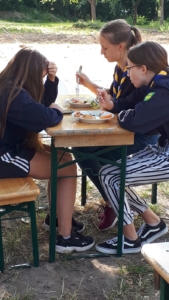 Danach fingen wir mit dem Grillen an und hatten viel Spaß mit unseren Freunden. Als alle mit dem Essen fertig waren, gingen wir in die Jurte und Streusel und Kenai zeigten einige Fotos aus den letzten Jahren um vielen Eltern zu zeigen was wir so Tolles auf Fahrten erleben! Als alle Fotos gezeigt waren gingen die Eltern. Dann bauten wir draußen die Tische ab und die Zelte auf und starteten ein schöne Singerunde.